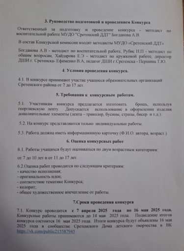В преддверии празднования 80-летия Победы в Великой Отечественной войне, Сретенский Дом детского творчества объявляет конкурс на лучшую брошь, созданную своими руками с использованием Георгиевской ленты.